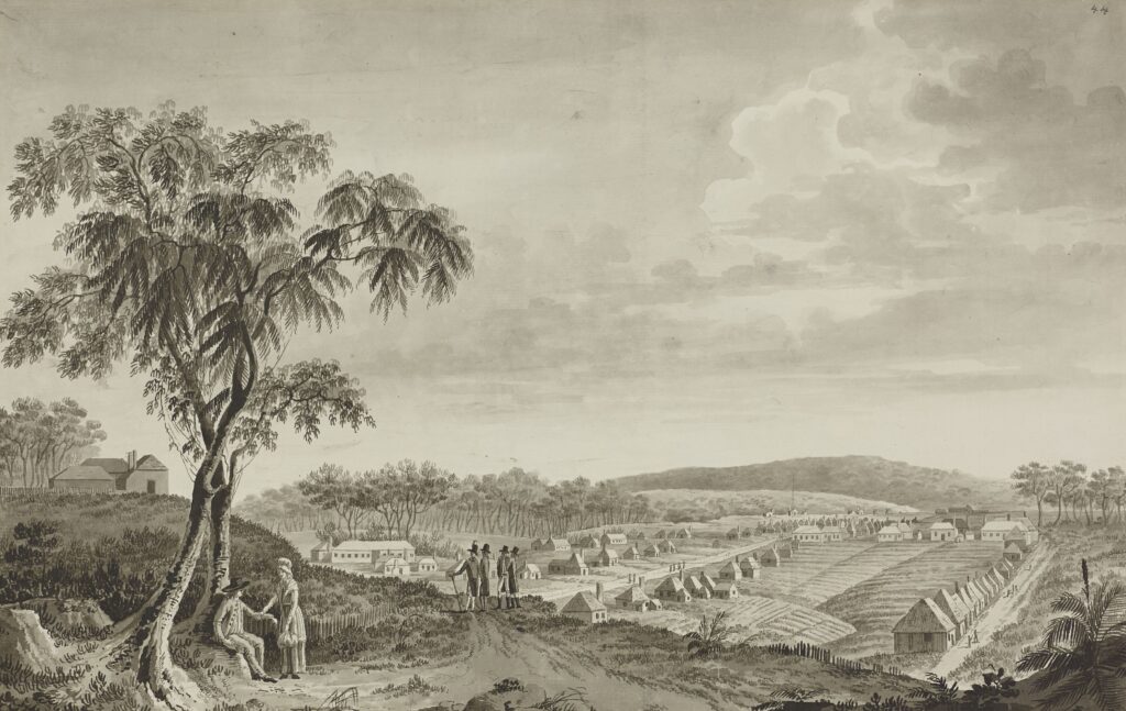 This map from 1804 shows the town’s development with convict huts and cottages along the main streets—George, Macquarie and Church—south of the river. Source: State Library NSW with GML Heritage overlay.