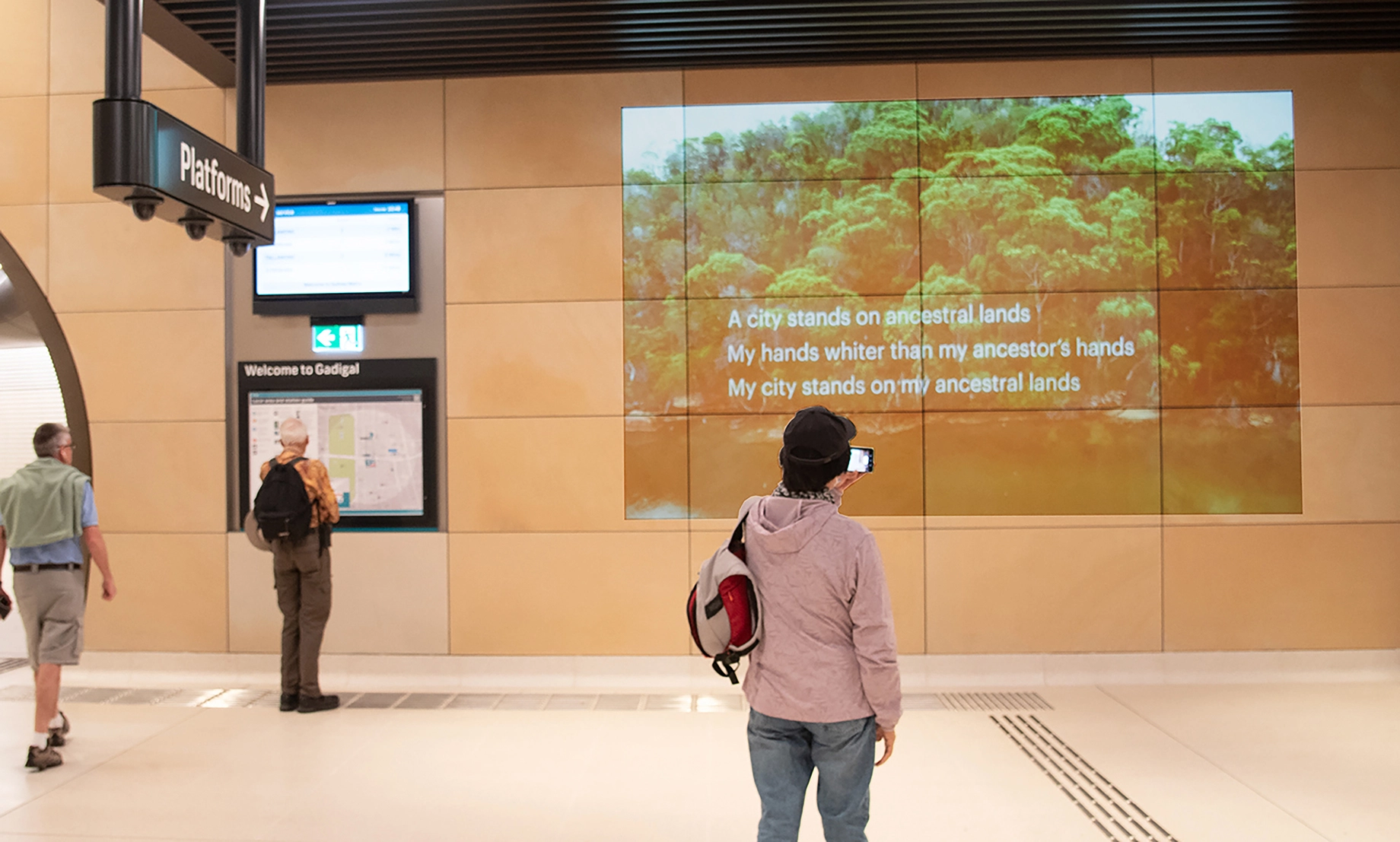 Inside the new Gadigal Station, a captivating digital artwork explores the enduring connections between people and Country.